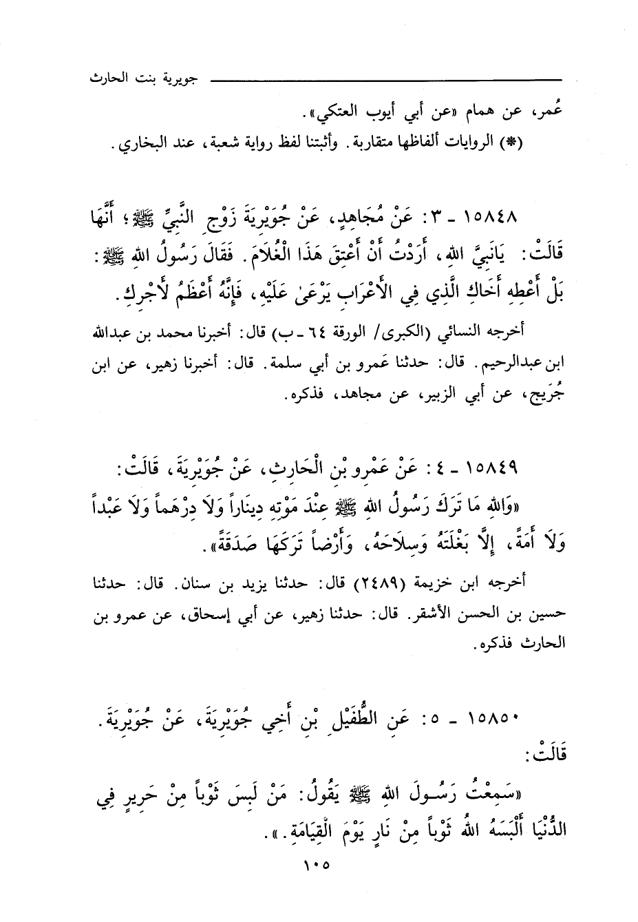 ١٥٨٤٩ - عَنْ عَمْرِو بْنِ الْحَارِثِ، عَنْ جُوَيْرِيَةَ، قالت: