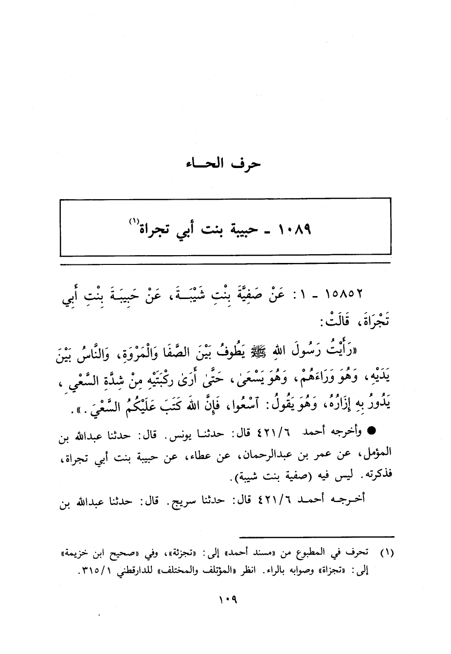 ١٠٨٩ - حبيبة بنت أبى تجراة