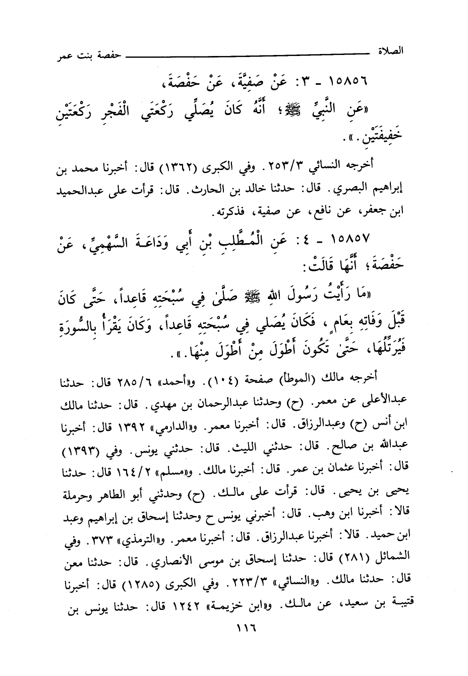 أخرجه النسائي ٣/ ٢٥٣. وفي "الكبرى" ١٤٥٧ قال: أخبرنا محمد بن إبراهيم البصري , قال: حدثنا خالد بن الحارث , قال: قرأت على عبد الحميد بن جعفر، عن نافع، عن صفية، فذكرته.