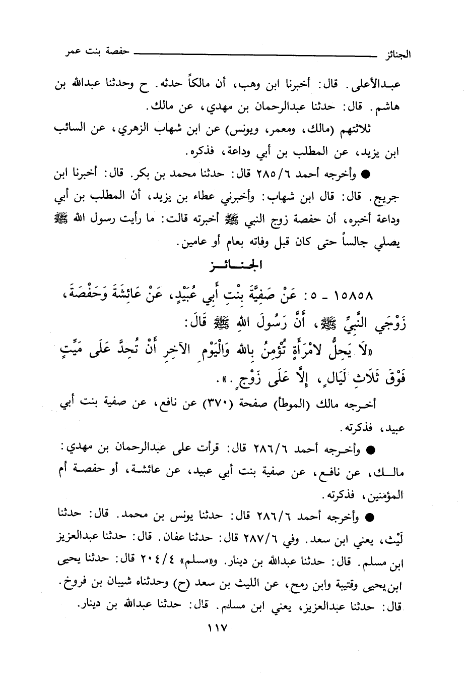 ١٥٨٥٨ - عَنْ صَفِيَّةَ بِنْتِ أبِي عُبَيْدٍ، عَنْ عَائِشَةَ وَحَفْصَةَ، زَوْجَي النَّبِيِّ صلى الله عليه وسلم، أَنَّ رَسُولَ اللَّهِ صلى الله عليه وسلم قال: