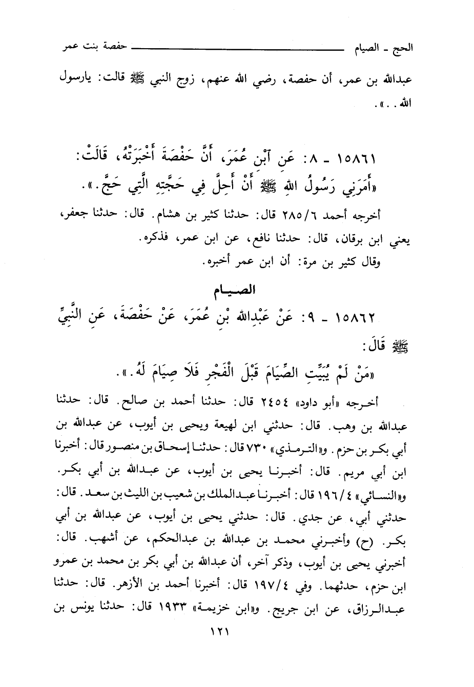 ١٥٨٦٢ - عَنْ عبد الله بْنِ عُمَرَ، عَنْ حَقصَةَ، عَنِ النَّبِيِّ صلى الله عليه وسلمقال:
