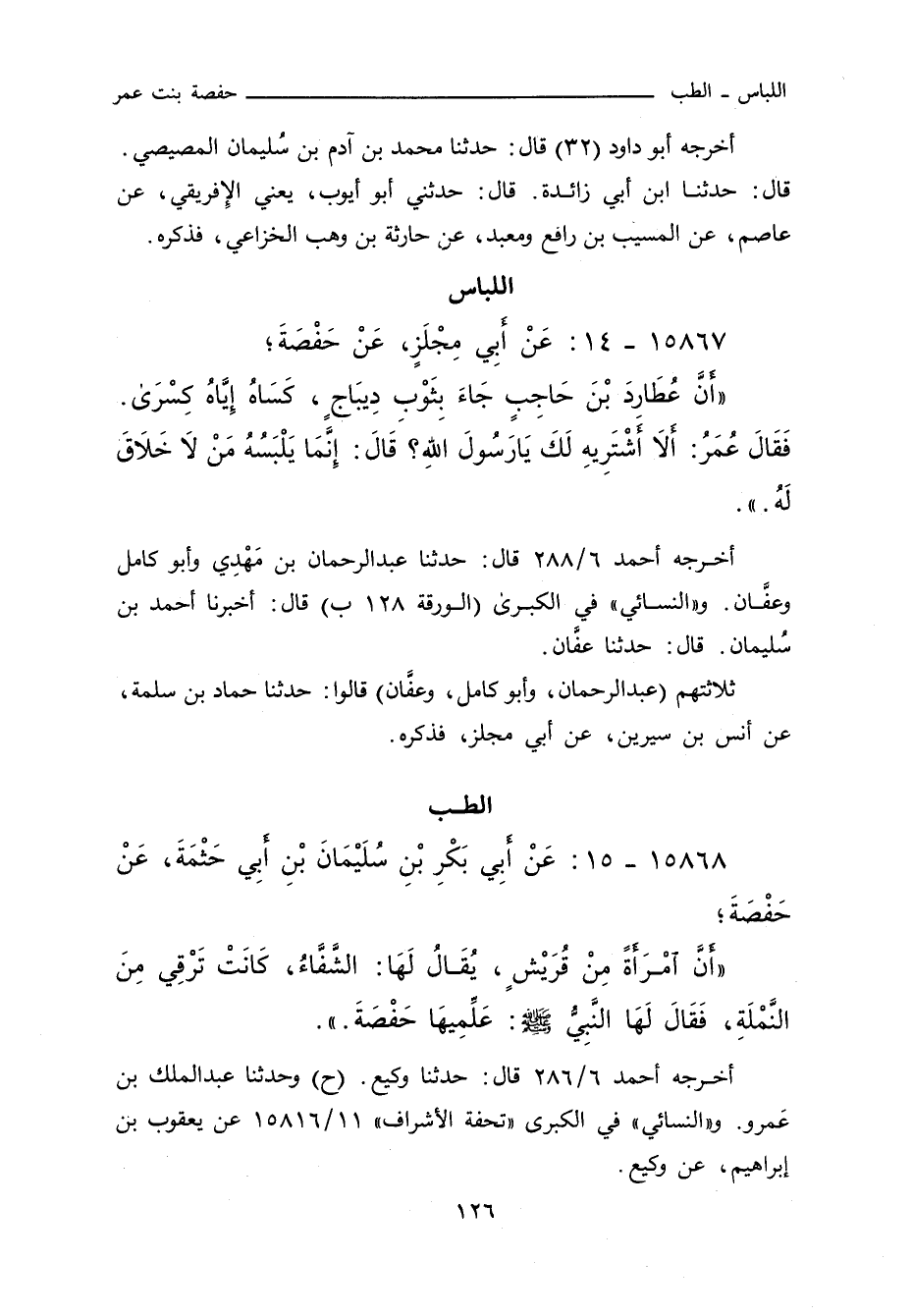 ١٥٨٦٨ - عَنْ أبِي بَكْرِ بْنِ سُلَيْمَانَ بْنِ أبِي حَثْمَةَ، عَنْ حَفْصَةَ؛
