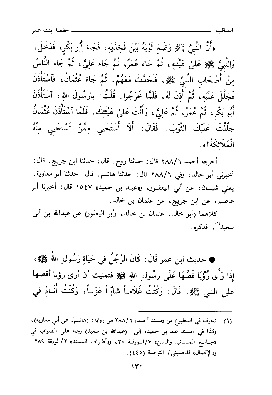 - حديث ابْنِ عُمَرَ قال: كَانَ الرَّجُلُ فِى حَيَاةِ رَسُولِ اللَّهِ صلى الله عليه وسلم، إِذَا رَأَى رُؤْيَا قَصَّهَا عَلَى رَسُولِ اللَّهِ صلى الله عليه وسلم، فَتَمَنَّيْتُ أَنْ أَرَى رُؤْيَا أَقُصُّهَا عَلَى النَّبِىِّ صلى الله عليه وسلم, قال: وَكُنْتُ غُلَامًا شَابًّا عَزَبًا، وَكُنْتُ أَنَامُ فِى