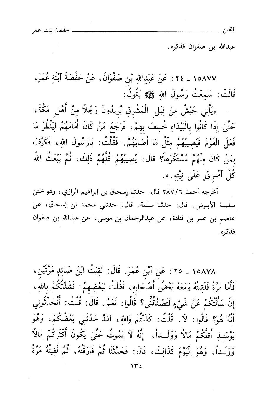 ١٥٨٧٧ - عَنْ عبد الله بْنِ صَفْوَانَ، عَنْ حَفْصَةَ آبْنَةِ عُمَر َ، قالت: سَمِعْتُ رَسُولَ اللَّهِ صلى الله عليه وسلميََقُول: