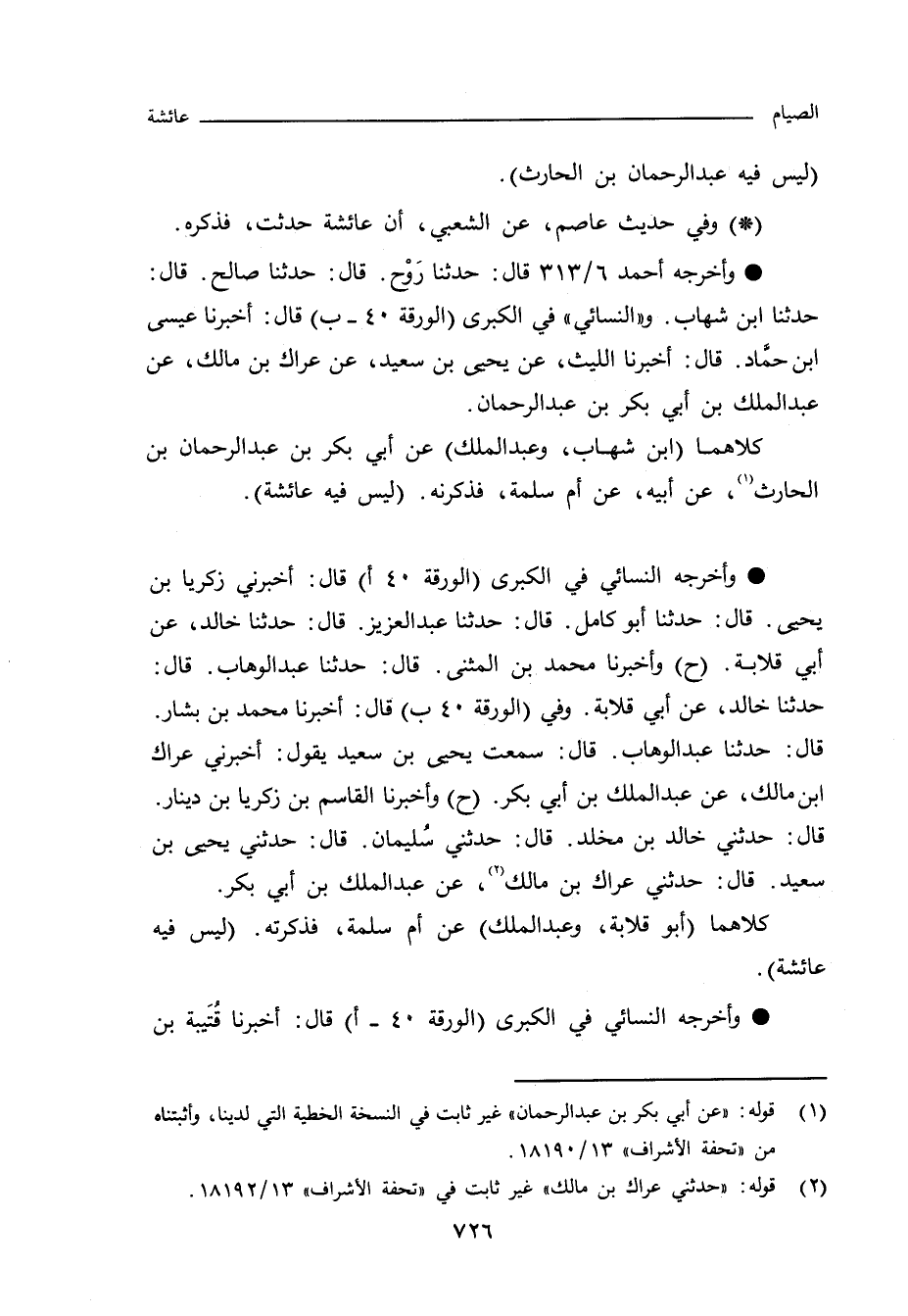 - واخرجه النسائي في "الكبرى" (الورقة ٤٠ ا) قال: اخبرني زكريا بن يحيى. قال: حدثنا أبو كامل. قال: حدثنا عبد العزيز. قال: حدثنا خالد، عن ابي قلابة (ح) واخبرنا محمد بن المثنى. قال: حدثنا عبد الوهاب. قال: حدثنا خالد، عن ابي قلابة. وفي (الورقة ٤٠ ب) قال: اخبرنا محمد بن بشار. قال: حدثنا عبد الوهاب. قال: سمعت يحيى بن سعيد يقول: اخبرني عراك بن مالك، عن عبد الملك بن ابي بكر (ح) واخبرنا القاسم بن زكريا بن دينار. قال: حدثني خالد بن مخلد. قال: حدثني سُليمان. قال: حدثني يحيى بن سعيد. قال: حدثني عراك بن مالك، عن عبد الملك بن ابي بكر.