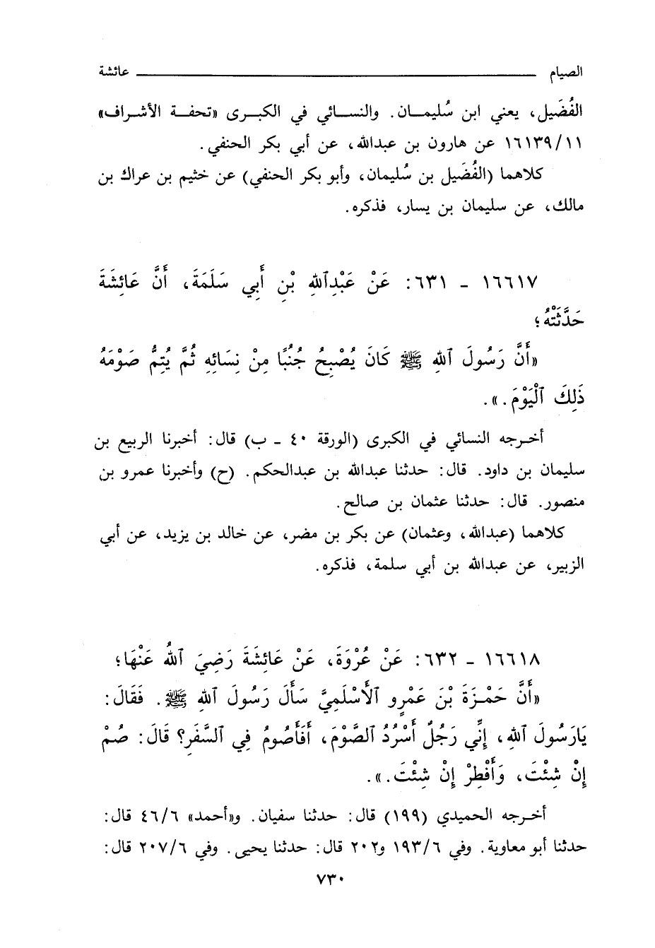 أخرجه النسائي في "الكبرى" (الورقة ٤٥ - ب) قال: اخبرنا الربيع بن سليمان بن داود. قال: حدثنا عبد الله بن عبد الحكم (ح) واخبرنا عمرو بن منصور. قال: حدثنا عثمان بن صالح.