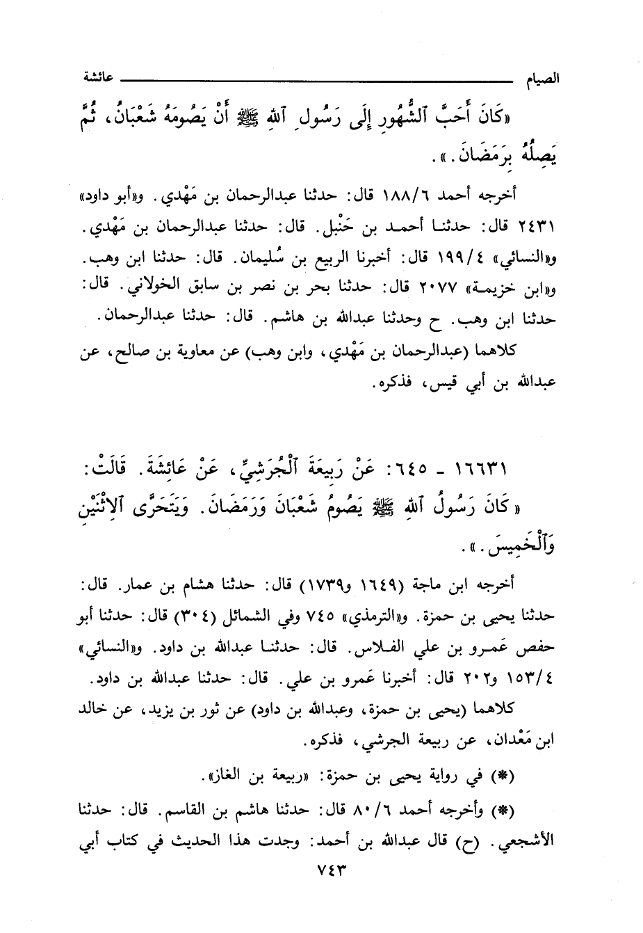أخرجه أحمد ٦/ ١٨٨ قال: حدثنا عبد الرحمن بن مَهْدي. و"أبو داود" ٢٤٣١ قال: حدثنا أحمد بن حَنْبل. قال: حدثنا عبد الرحمن بن مَهْدي. و"النَّسائي" ٤/ ١٩٩ قال: اخبرنا الربيع بن سُليمان. قال: حدثنا ابن وهب. و"ابن خزيمة" ٢٠٧٧ قال: حدثنا بحر بن نصر بن سابق الخولاني. قال: حدثنا ابن وهب (ح) وحدثنا عبد الله بن هاشم. قال: حدثنا عبد الرحمن.