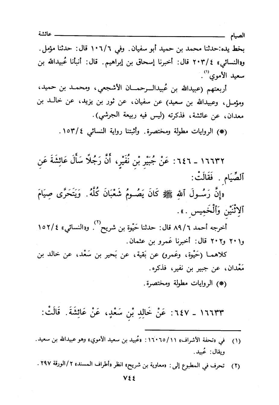 ١٦٦٣٢ - عَنْ جُبَيْرِبْنِ نُفَيْرٍ، انَّ رَجُلا سَالَ عَائِشَةَ عَنِ الصِّيَام. فَقَالَتْ: