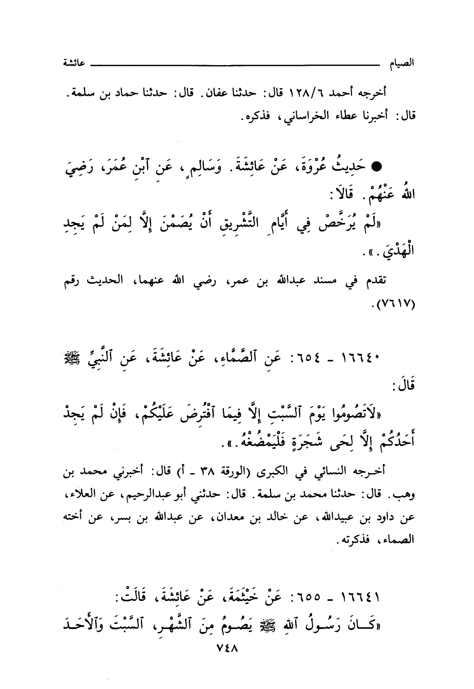 ١٦٦٤٠ - عَنِ الصَمَّاءِ، عَنْ عَائِشَةَ، عَنِ النَّبِيِّ صلى الله عليه وسلم قال: