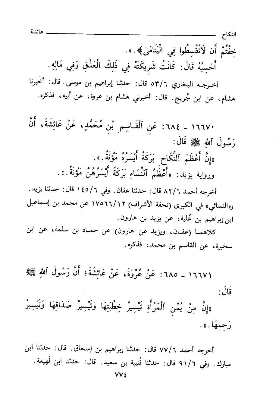 ورواية يزيد: اعْظَمُ النِّسَاءِ بَرَكَةً ايْسَرُهُنَّ مُؤْنَة.