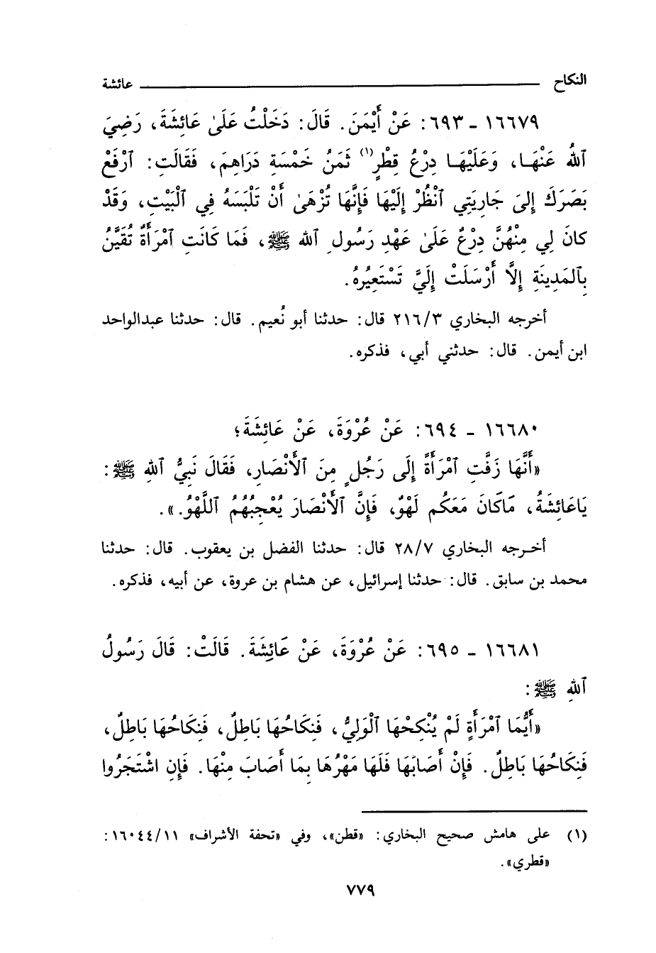 ١٦٦٨٠ - عَنْ عُرْوَةَ، عَنْ عَائِشَةَ؛