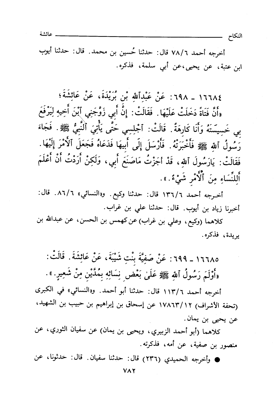 أخرجه أحمد ٦/ ١٣٦ قال: حدثنا وكيع. و"النَّسائي" ٦/ ٨٦ قال: اخبرنا زياد بن ايوب. قال: حدثنا علي بن غراب.
