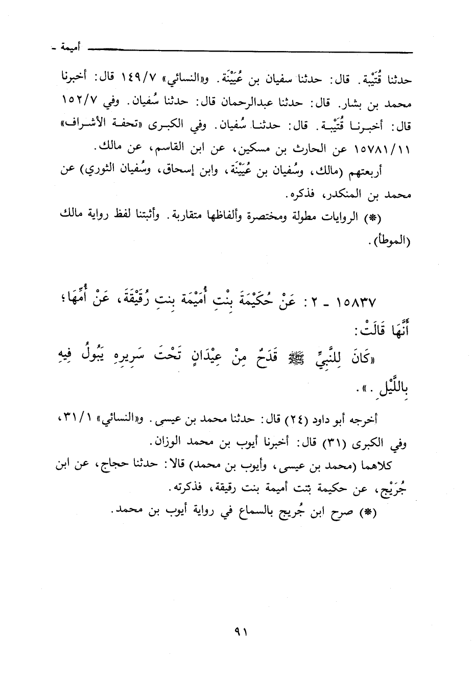 ١٥٨٣٧ - عَنْ حُكَيْمَةَ بِنْتِ أمَيْمَة بِنتِ رُقَيْقَةَ، عَنْ أمِّهَا؛ أنَّهَا قالت: