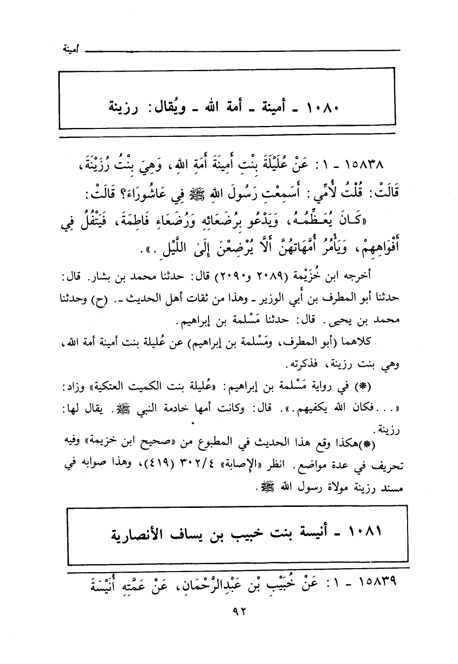 ١٠٨١ - أنيسة بنت خبيب بن يساف الأنصارية