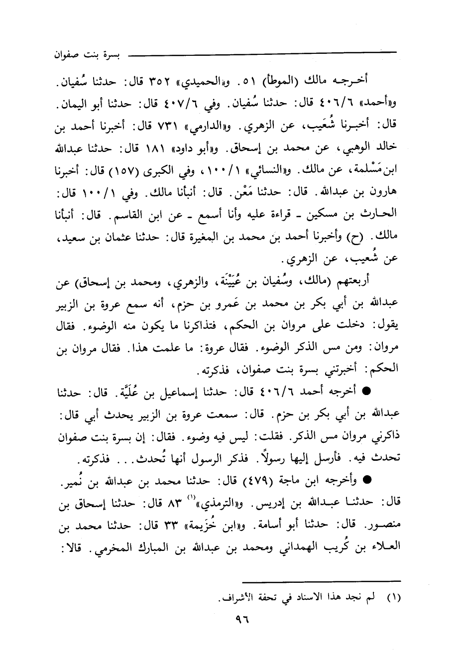 - أخرجه أحمد ٦/ ٤٠٦ قال: حدثنا إسماعيل ابن عُلَيَّة , قال: حدثنا عبد الله بن أبي بكر بن حزم , قال: سمعت عروة بن الزبير يحدث أبي قال: ذاكرني مروان مس الذكر. فقلت: ليس فيه وضوء. فقال: إن بسرة بنت صفوان تحدث فيه. فأرسل إليها رسولاً. فذكر الرسول أنها تُحدث. . فذكرته.
