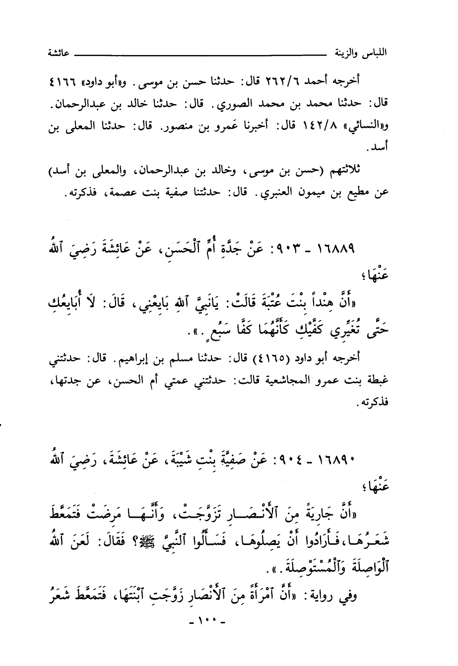 ١٦٨٩٠ - عَنْ صَفِيَّةَ بِنْتِ شَيْبَةَ عَنْ عَائِشَةَ - رضى الله عنها -