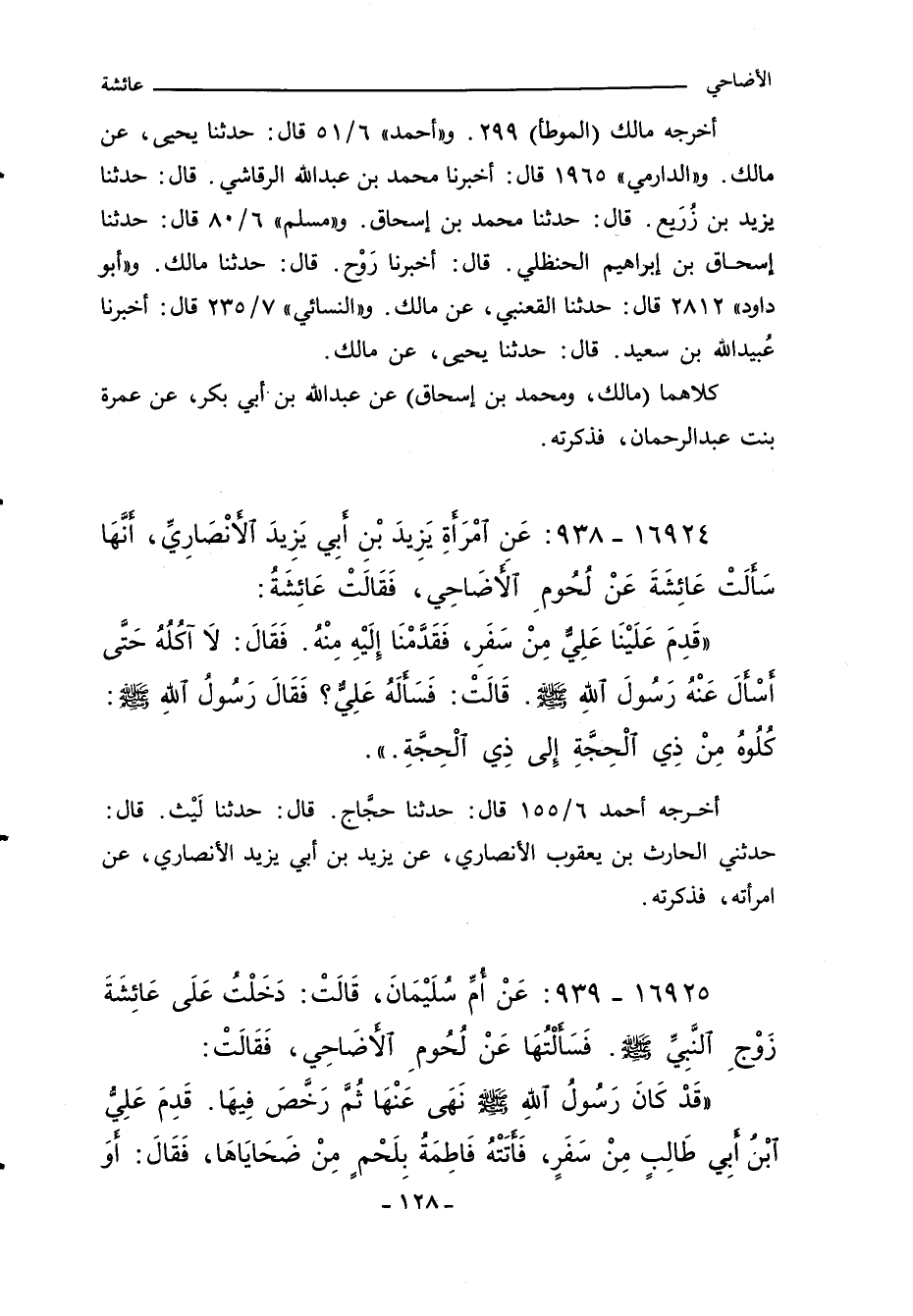 أخرجه مالك "الموطأ" ٢٩٩. و"أحمد" ٦/ ٥١ قال: حدثنا يحيى، عن مالك. و (الدارمي) ١٩٦٥ قال: أخبرنا محمد بن عَبد اللهِ الرقاشي. قال: حدثنا يزيد بن زُرَيع. قال: حدثنا محمد بن إسحاق. و"مسلم" ٦/ ٨٠ قال: حدثنا إسحاق بن إبراهيم الحنظلي. قال: أخبرنا رَوْح. قال: حدثنا مالك. و"أبو داود" ٢٨١٢ قال: حدثنا القعنبي، عن مالك. و (النسائي) ٧/ ٢٣٥ قال: أخبرنا عُبيدالله بن سعيد. قال: حدثنا يحيى، عن مالك.