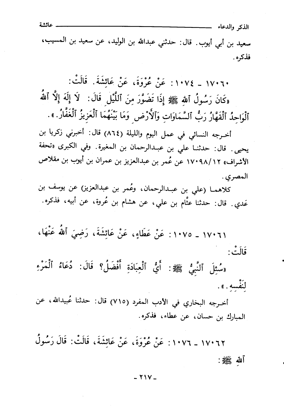 ١٧٠٦٠ - عَنْ عًرْوَةَ، عَنْ عَائِشَةَ. قَالَتْ: