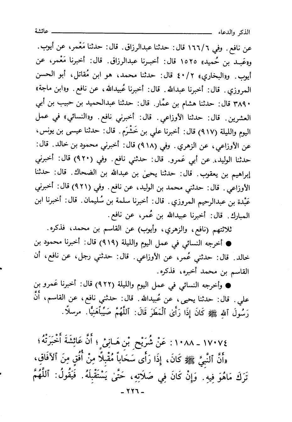 - أخرجه النسائي في عمل اليوم والليلة (٩١٩) قال: أخبرنا محمود بن خالد. قال: حدثني عُمر، عن الاوزاعي. قال: حدثني رجل، عن نافع، ان القاسم بن محمد اخبره، فذكره.