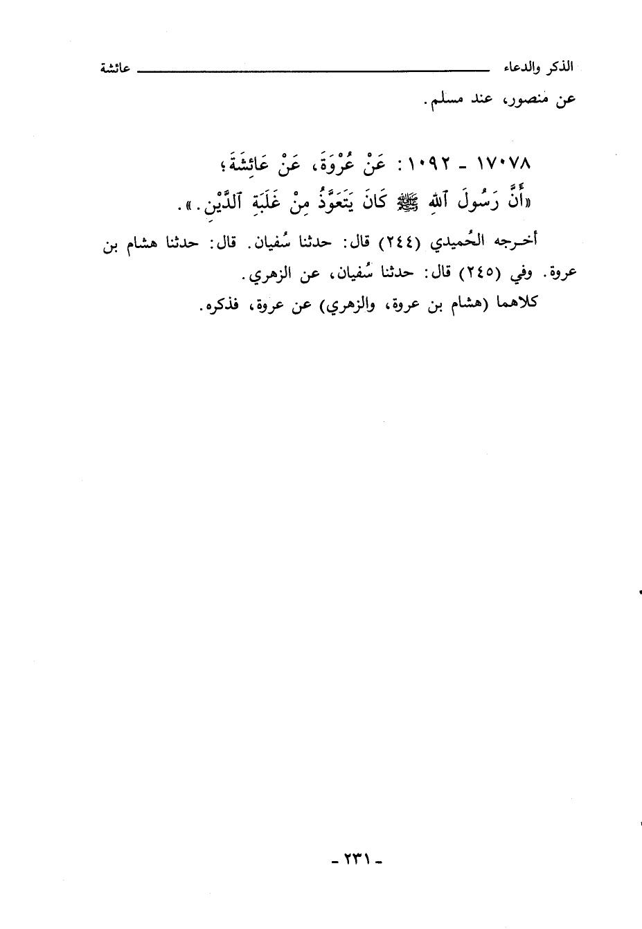 ١٧٠٧٨ - عَنْ عُرْوَةَ، عَنْ عَائِشَةَ؛