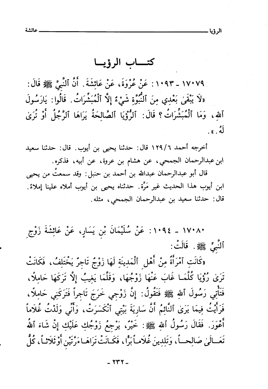 ١٧٠٧٩ - عَنْ عُرْوَةَ، عَنْ عَائِشَةَ. أَنَّ النَّبِيَّ صلى الله عليه وسلم قَالَ: