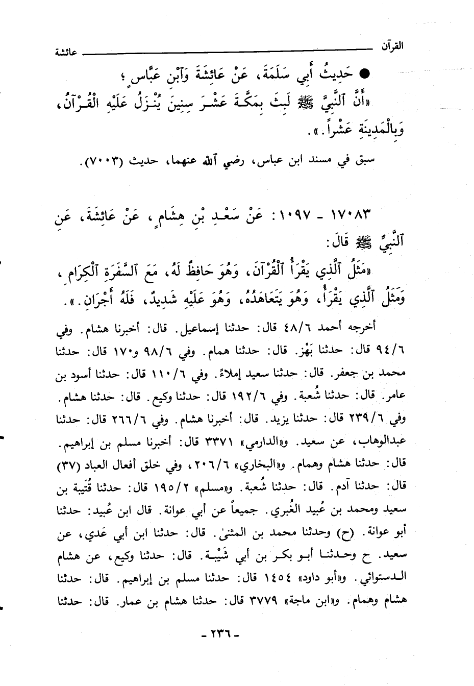 ١٧٠٨٣ - عَنْ سَعْدِ بْنِ هِشَامٍ، عَنْ عَائِشَةَ، عَنِ النَّبِيِّ صلى الله عليه وسلم قَالَ:
