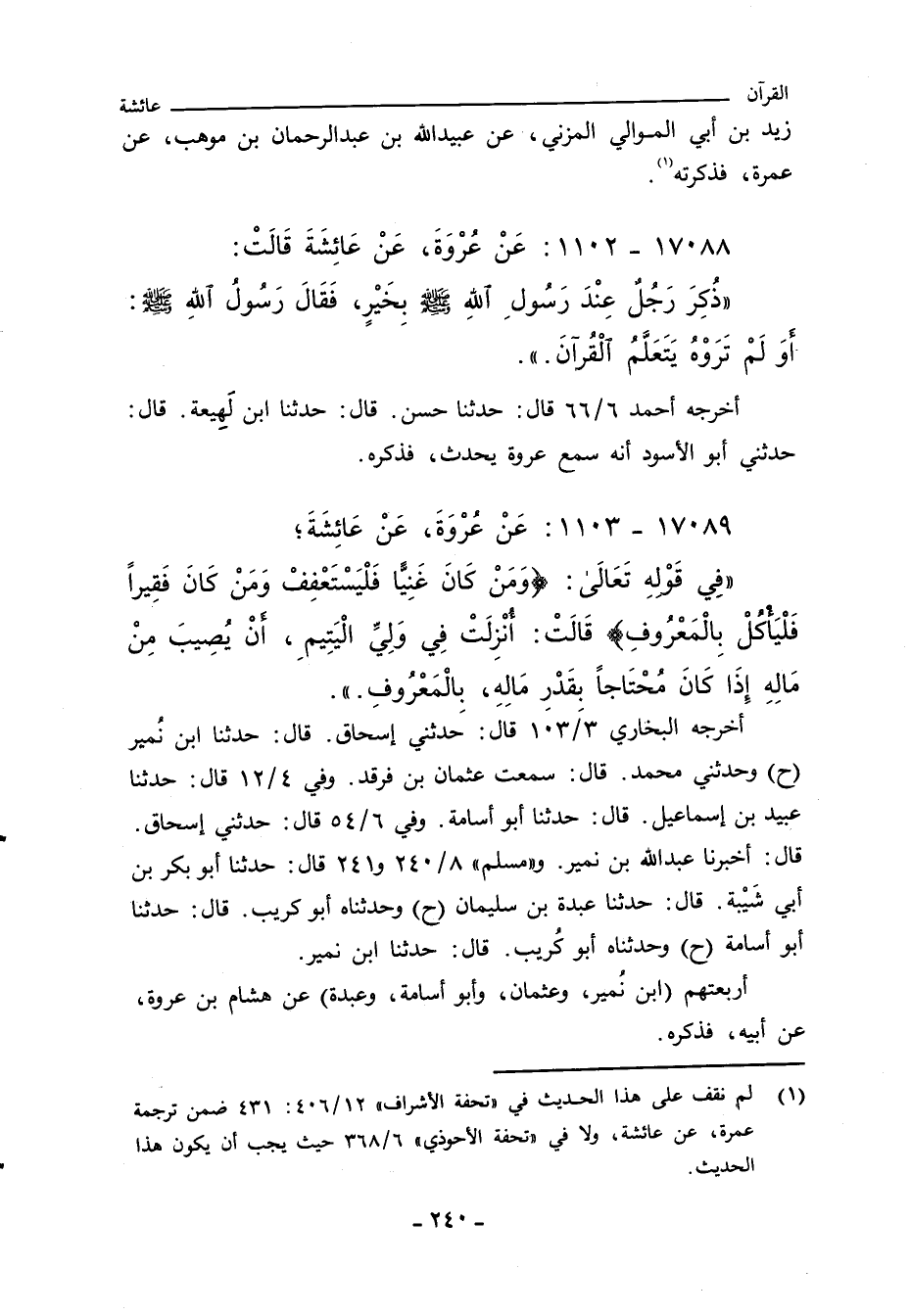 أخرجه البخاري ٣/ ١٠٣ قال: حَدثني إسحاق. قال: حدثنا ابن نُمير (ح) وحدثني محمد. قال: سمعت عثمان بن فرقد. وفي ٤/ ١٢ قال: حدثنا عبيد بن إسماعيل. قال: حدثنا ابو أُسامة. وفي ٦/ ٥٤ قال: حدثني إسحاق. قال: أخبرنا عبد الله بن نمير. و"مسلم" ٨/ ٢٤٠ و ٢٤١ قال: حدثنا ابو بكر بن أبي شَيبة. قال: حدثنا عبدة بن سليمان (ح) وحدثناه ابو كريب. قال: حدثنا ابو أُسامة (ح) وحدثناه ابو كُريب. قال: حدثنا ابن نمير.