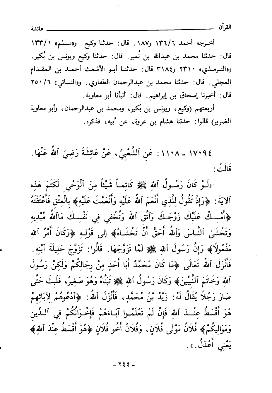 أخرجه أحمد ٦/ ١٣٦ و ١٨٧. قال: حدثنا وكيع. و"مسلم" ١/ ١٣٣ قال: حدثنا محمد بن عبد الله بن نُمير. قال: حدثنا وكيع ويونس بن بُكير. و"التِّرمِذي" ٢٣١٠ و ٣١٨٤ قال: حدثنا ابو الاشعث أحمد بن المقدام العجلي. قال: حدثنا محمد بن عبد الرحمن الطفاوي. و"النَّسائي" ٦/ ٢٥٠ قال: أخبرنا إسحاق بن إبراهيم. قال: أنبانا ابو معاوية.