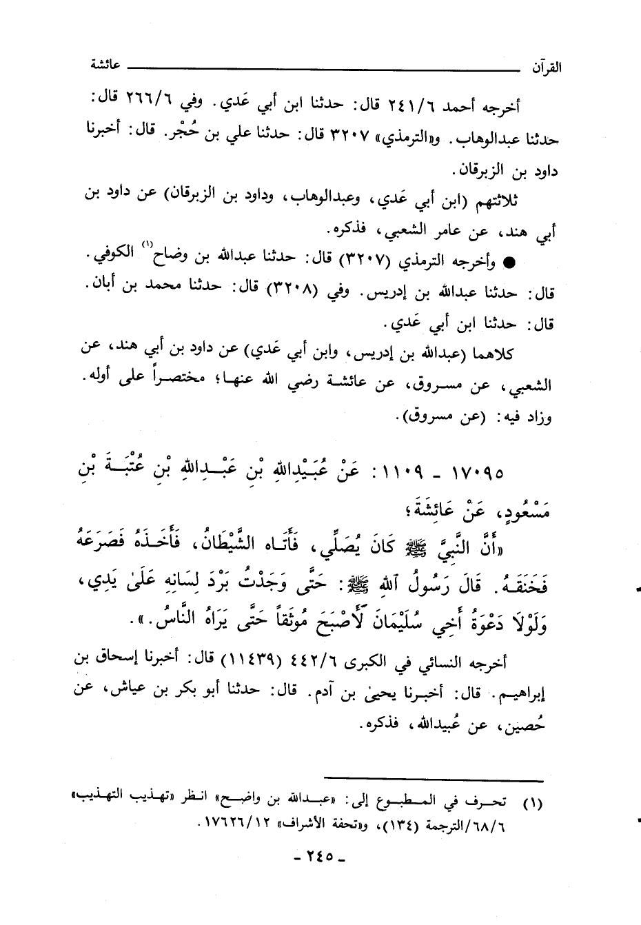 أخرجه أحمد ٦/ ٢٤١ قال: حدثنا ابن أبي عَدي. وفي ٦/ ٢٦٦ قال: حدثنا عبد الوهاب. و"التِّرمِذي" ٣٢٠٧ قال: حدثنا علي بن حُجْر. قال: أخبرنا داود بن الزبرقان.