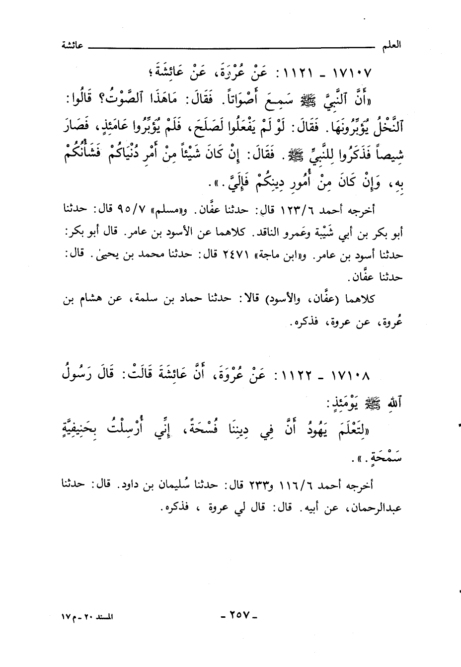 ١٧١٠٧ - عَنْ عُرْوَةَ، عَنْ عَائِشَةَ؛