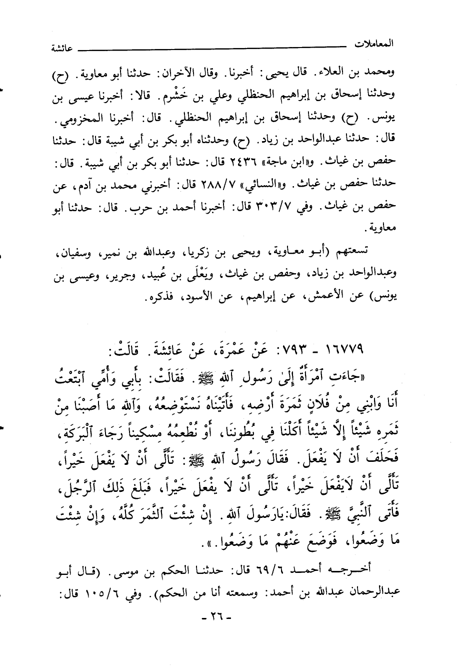 ١٦٧٧٩ - عَنْ عَمْرَةَ، عَنْ عَائِشَةَ. قَالَتْ: