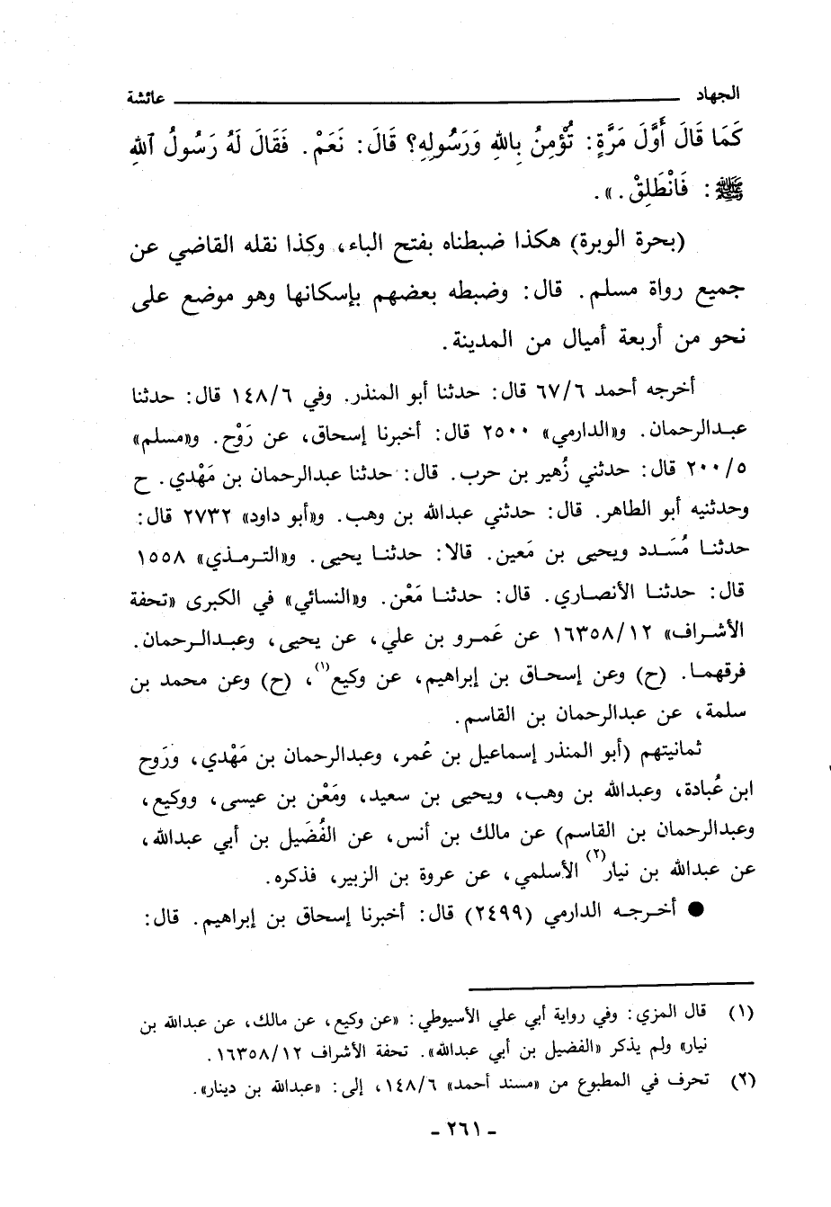 (بحرة الوبرة) هكذا ضبطناه بفتح الباء، وكذا نقله القاضي عن جميع رواة مسلم. قال: وضبطه بعضهم باسكانها وهو موضع على نحو من اربعة اميال من المدينة.