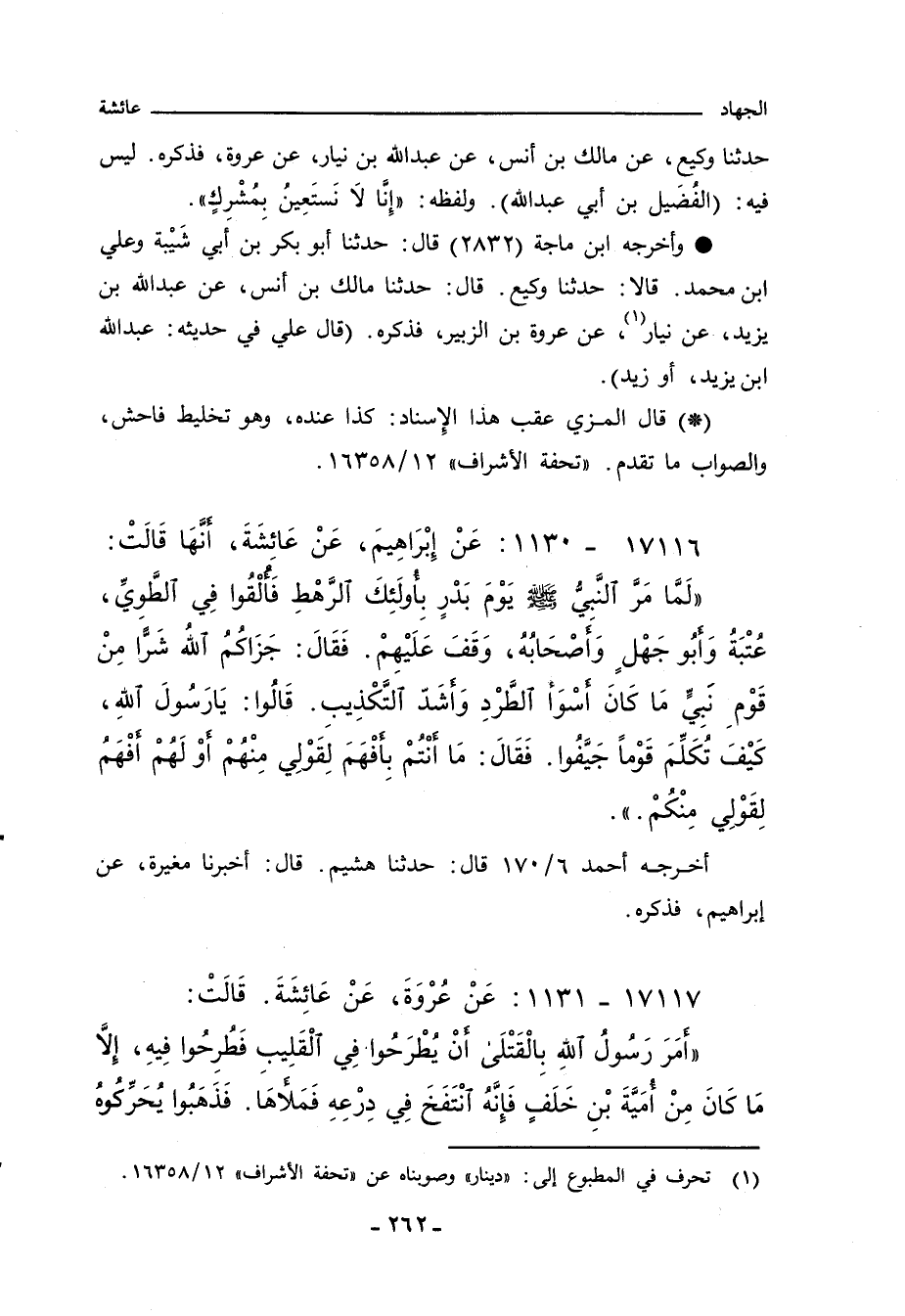 حدثنا وكيع، عن مالك بن انس، عن عبد الله بن نيار، عن عروة، فذكره. ليس فيه: (الفُضَيل بن أبي عبد الله). ولفظه: إِنَّا لا نَستَعِينُ بمُشْرِكٍ.