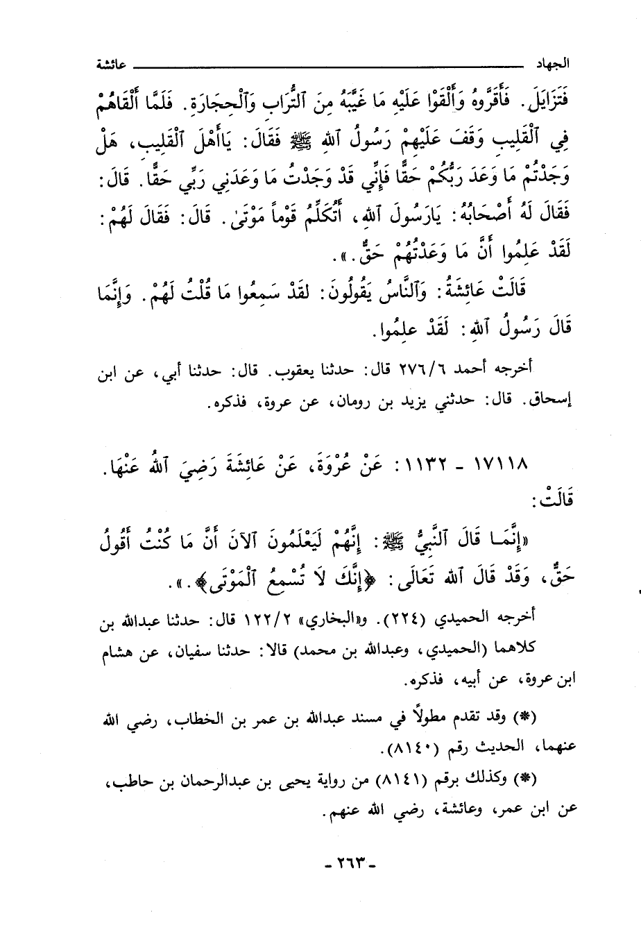 - وكذلك برقم (٨١٤١) من رواية يحيى بن عبد الرحمن بن حاطب، عن ابن عمر، وعائشة، رضي الله عنهم.