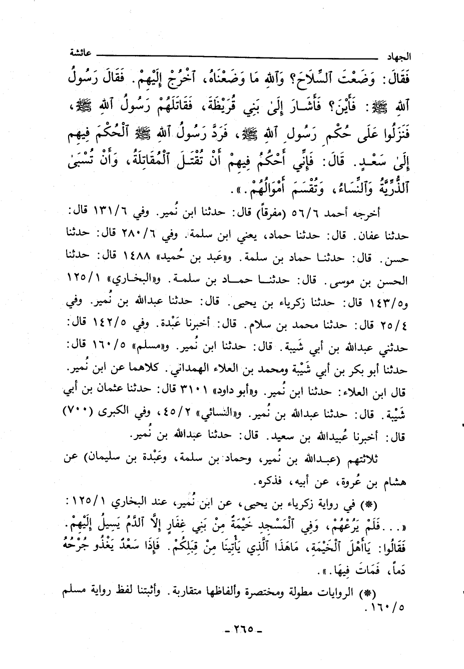 أخرجه أحمد ٦/ ٥٦ (مفرقًا) قال: حدثنا ابن نُمير. وفي ٦/ ١٣١ قال: حدثنا عفان. قال: حدثنا حماد، يعني ابن سلمة. وفي ٦/ ٢٨٠ قال: حدثنا حسن. قال: حدثنا حماد بن سلمة. وعَبد بن حُميد ١٤٨٨ قال: حدثنا الحسن بن موسى. قال: حدثنا حماد بن سلمة. و"البُخَارِي" ١/ ١٢٥ و ٥/ ١٤٣ قال: حدثنا زكرياء بن يحيى. قال: حدثنا عبد اللَّه بن نمير. وفي ٤/ ٢٥ قال: حدثنا محمد بن سلام. قال: أخبرنا عَبْدة. وفي ٥/ ١٤٢ قال: حدثني عبد اللَّه بن أبي شَيبة. قال: حدثنا ابن نُمير. و"مسلم" ٥/ ١٦٠ قال: حدثنا ابو بكر بن أبي شَيْبة ومحمد بن العلاء الهمداني. كلاهما عن ابن نُمير. قال ابن العلاء: حدثنا ابن نُمير. و"أبو داود" ٣١٠١ قال: حدثنا عثمان بن أبي شَيْبة. قال: حدثنا عبد الله بن نُمير. و"النَّسائي" ٢/ ٤٥، وفي "الكبرى" (٧٠٠) قال: أخبرنا عُبيد الله بن سعيد. قال: حدثنا عبد الله بن نُمير.