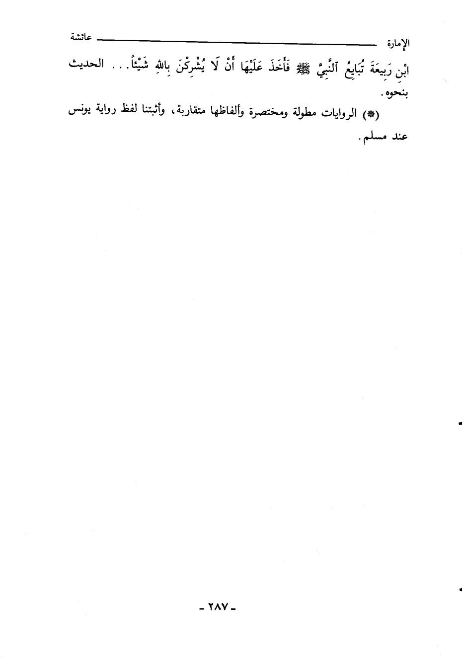 بْنِ رَبِيعَةَ تُبَايِعُ النَّبِيَّ صلى الله عليه وسلم فَاخَذَ عَلَيْهَا أَنْ لا يُشْرِكْنَ بِاللَّهِ شَيْئًا. . . الحديث بنحوه.