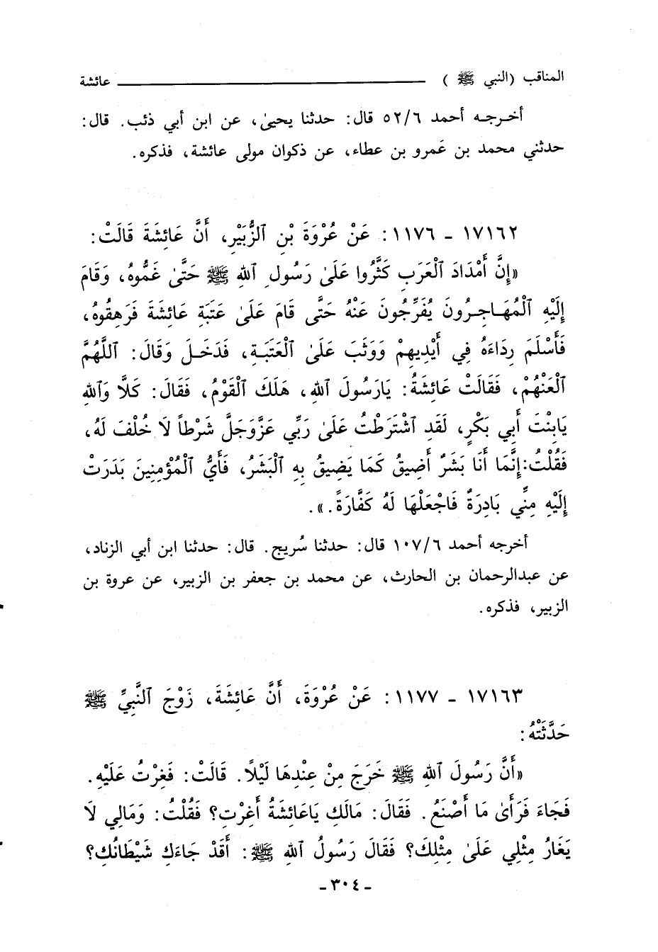 إِنَّ امْدَادَ الْعَرَبِ كَثُرُوا عَلَى رَسُولِ اللَّهِ صلى الله عليه وسلم حَتَّى غَمُّوهُ، وَقَامَ إِلَيْهِ الْمُهَاجِرُونَ يَفْرِجُونَ عَنْهُ حَتَّى قَامَ عَلَى عَتَبَةِ عَائِشَةَ فَرَهِقُوهُ، فَاسْلَمَ رِدَاءَهُ فِى ايْدِيهِمْ وَوَثَبَ عَلَى الْعَتَبَةِ، فَدَخَلَ وَقَال: اللَّهُمَّ الْعَنْهُمْ. فَقَالَتْ عَائِشَةُ: يَا رَسُولَ اللَّهِ هَلَكَ الْقَوْمُ. فَقَالَ: كَلَاّ وَاللَّهِ يَا بِنْتَ ابِى بَكْرٍ لَقَدِ اشْتَرَطْتُ عَلَى رَبِّى عَزَّ وَجَلَّ شَرْطًا لا خُلْفَ لَهُ، فَقُلْتُ: إِنَّمَا انَا بَشَرٌ اضِيقُ كَمَا يَضِيقُ بِهِ الْبَشَرُ، فَاىُّ الْمُؤْمِنِينَ بَدَرَتْ إِلَيْهِ مِنِّى بَادِرَةٌ فَاجْعَلْهَا لَهُ كَفَّارَةً.