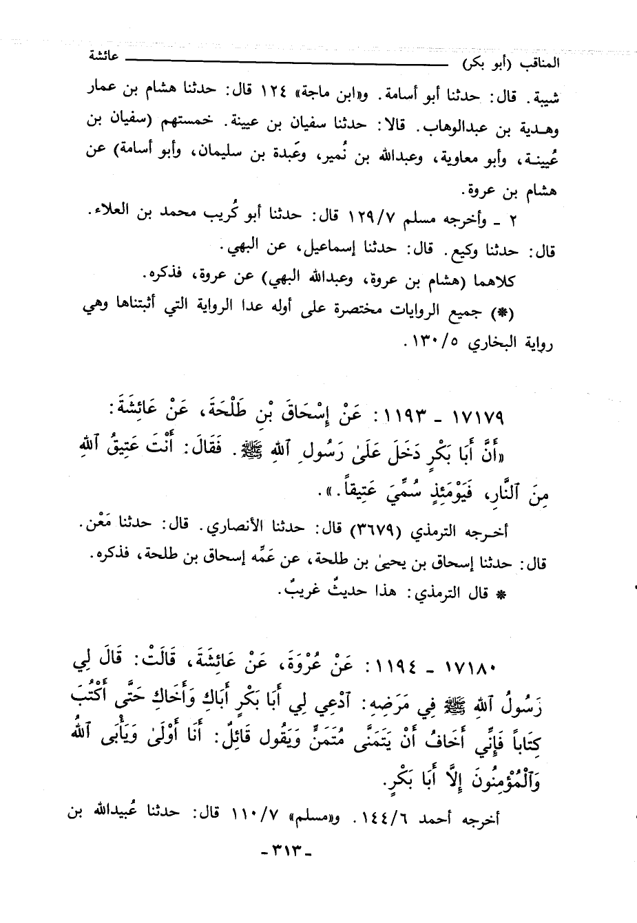 شيبة. قال: حدثنا ابو أُسامة. و"ابن ماجة" ١٢٤ قال: حدثنا هشام بن عمار وهدية بن عبد الوهاب. قالا: حدثنا سفيان بن عيينة.