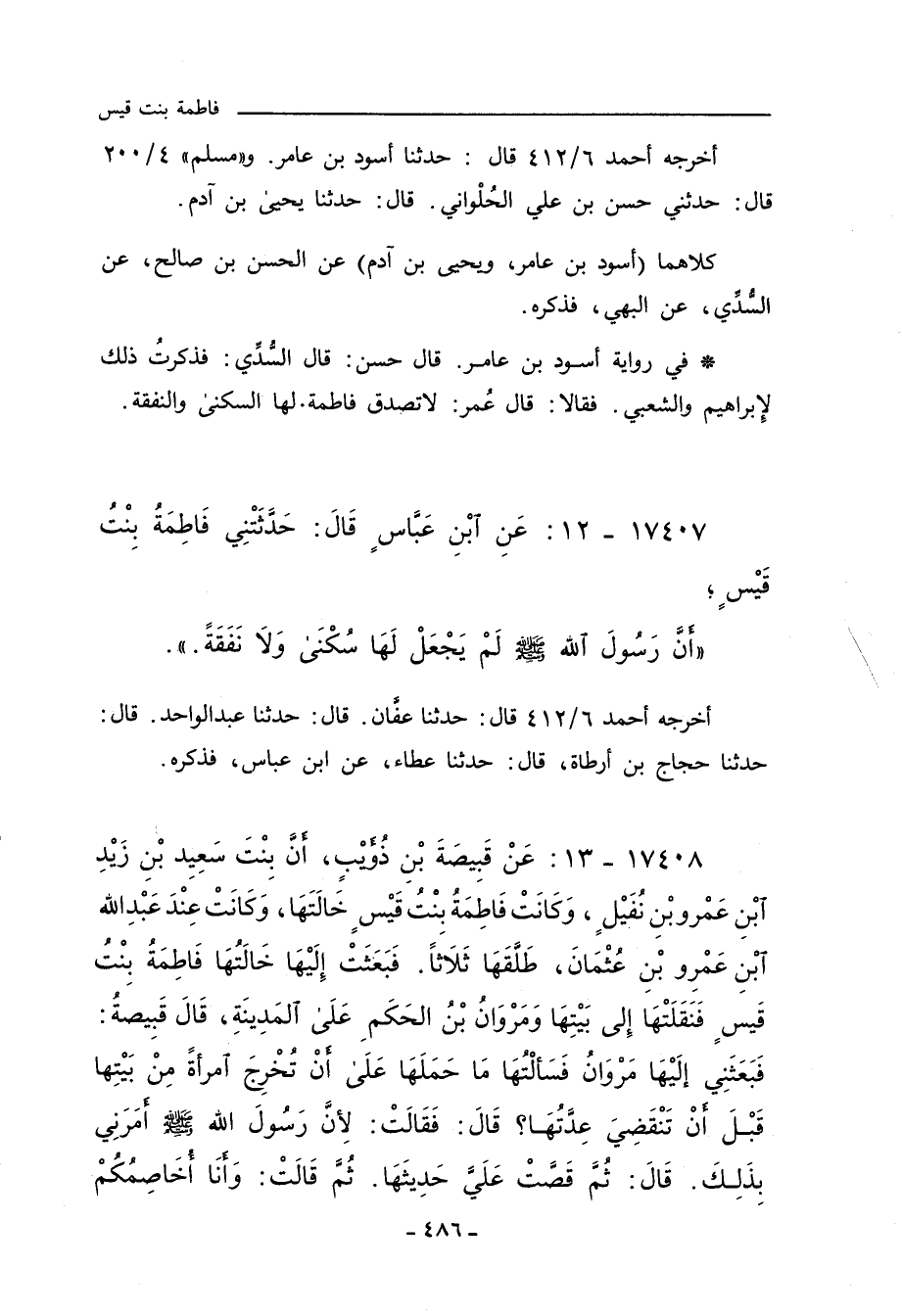 ١٧٤٠٧ - عَنِ ابْنِ عَبَّاسٍ قَالَ: حَدَّثَتْنِي فَاطِمَةُ بِنْتُ قَيْسٍ؛