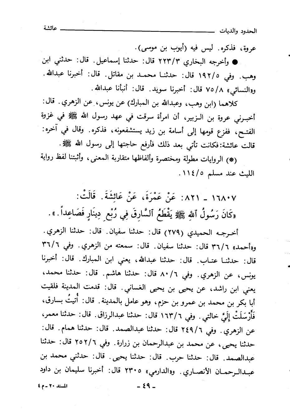 أخرجه الحميدي (٢٧٩) قال: حدثنا سفيان. قال: حدثنا الزهري. و"أحمد" ٦/ ٣٦ قال: حدثنا سفيان. قال: سمعته من الزهري. وفي ٦/ ٣٦ قال: حدثنا عتاب. قال: حدثنا عبد الله، يعني ابن المبارك. قال: أخبرنا يونس، عن الزهري. وفي ٦/ ٨٠ قال: حدثنا هاشم. قال: حدثنا محمد، يعني ابن راشد، عن يحيى بن يحيى الغساني. قال: قدمت المدينة فلقيت ابا بكر بن محمد بن عمرو بن حزم، وهو عامل بالمدينة. قال: اتيتُ بسارق، فَارْسَلَتْ الَيَّ خالتي. وفي ٦/ ١٦٣ قال: حدثنا عبد الرزاق. قال: حدثنا معمر، عن الزهري. وفي ٦/ ٢٤٩ قال: حدثنا عبد الصمد. قال: حدثنا همام. قال: حدثنا يحيى، عن محمد بن عبد الرحمن بن زرارة. وفي ٦/ ٢٥٢ قال: حدثنا عبد الصمد. قال: حدثنا حرب. قال: حدثنا يحيى. قال: حدثني محمد بن عبد الرحمن الانصاري. و"الدارِمِي" ٢٣٠٥ قال: أخبرنا سليمان بن داود