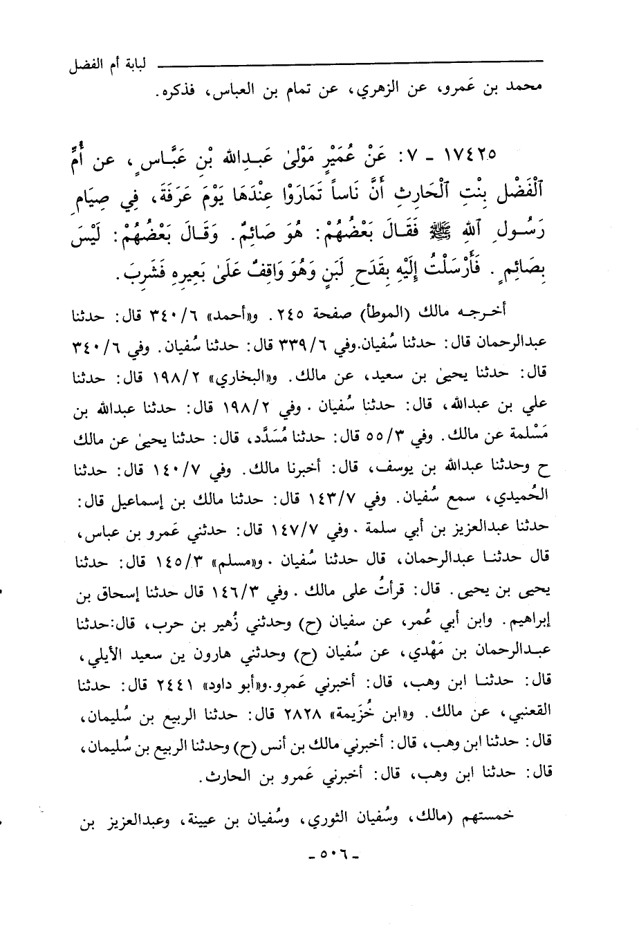 خمستهم (مالك، وسُفيان الثوري، وسُفيان بن عيينة، وعبد العزيز بن لبابة أم الفضل
