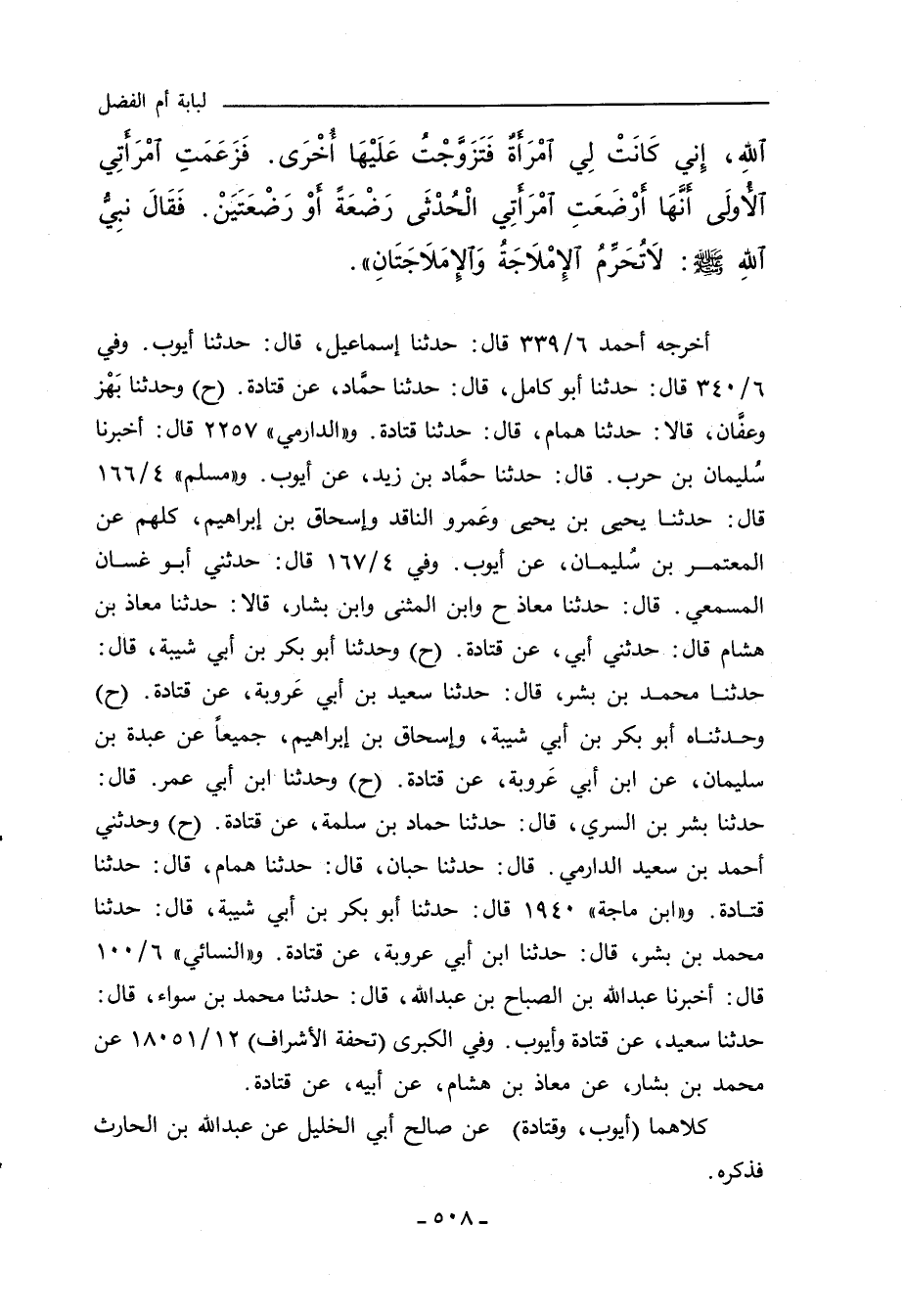 أخرجه أحمد ٦/ ٣٣٩ قال: حدثنا إسماعيل، قال: حدثنا أيوب. وفي ٦/ ٣٤٠ قال: حدثنا أبو كامل، قال: حدثنا حمَّاد، عن قتادة (ح) وحدثنا بَهْز وعفَّان، قالا: حدثنا همام، قال: حدثنا قتادة. و"الدارِمِي" ٢٢٥٧ قال: أخبرنا سُليمان بن حرب، قال: حدثنا حمَّاد بن زيد، عن أيوب. و"مسلم" ٤/ ١٦٦ قال: حدثنا يحيى بن يحيى وعَمرو الناقد وإسحاق بن إبراهيم، كلهم عن المعتمر بن سُليمان، عن أيوب. وفي ٤/ ١٦٧ قال: حدثني أبو غسان المسمعي، قال: حدثنا معاذ ح وابن المثنى وابن بشار، قالا: حدثنا معاذ بن هشام قال: حدثني أبي، عن قتادة (ح) وحدثنا أبو بكر بن أبي شيبة، قال: حدثنا محمد بن بشر، قال: حدثنا سعيد بن أبي عَروبة، عن قتادة (ح) وحدثناه أبو بكر بن أبي شيبة، وإسحاق بن إبراهيم، جميعًا عن عبدة بن سليمان، عن ابن أبي عَروبة، عن قتادة (ح) وحدثنا ابن أبي عمر، قال: حدثنا بشر بن السري، قال: حدثنا حماد بن سلمة، عن قتادة (ح) وحدثني أحمد بن سعيد الدارمي، قال: حدثنا حبان، قال: حدثنا همام، قال: حدثنا قتادة. و"ابن ماجة" ١٩٤٠ قال: حدثنا أبو بكر بن أبي شيبة، قال: حدثنا محمد بن بشر، قال: حدثنا ابن أبي عروبة، عن قتادة. و"النَّسائي" ٦/ ١٠٠ قال: أخبرنا عبد الله بن الصباح بن عبد الله، قال: حدثنا محمد بن سواء، قال: حدثنا سعيد، عن قتادة وأيوب. وفي "الكبرى" (تحفة الاشراف) ١٢/ ١٨٠٥١ عن محمد بن بشار، عن معاذ بن هشام، عن أبيه، عن قتادة.