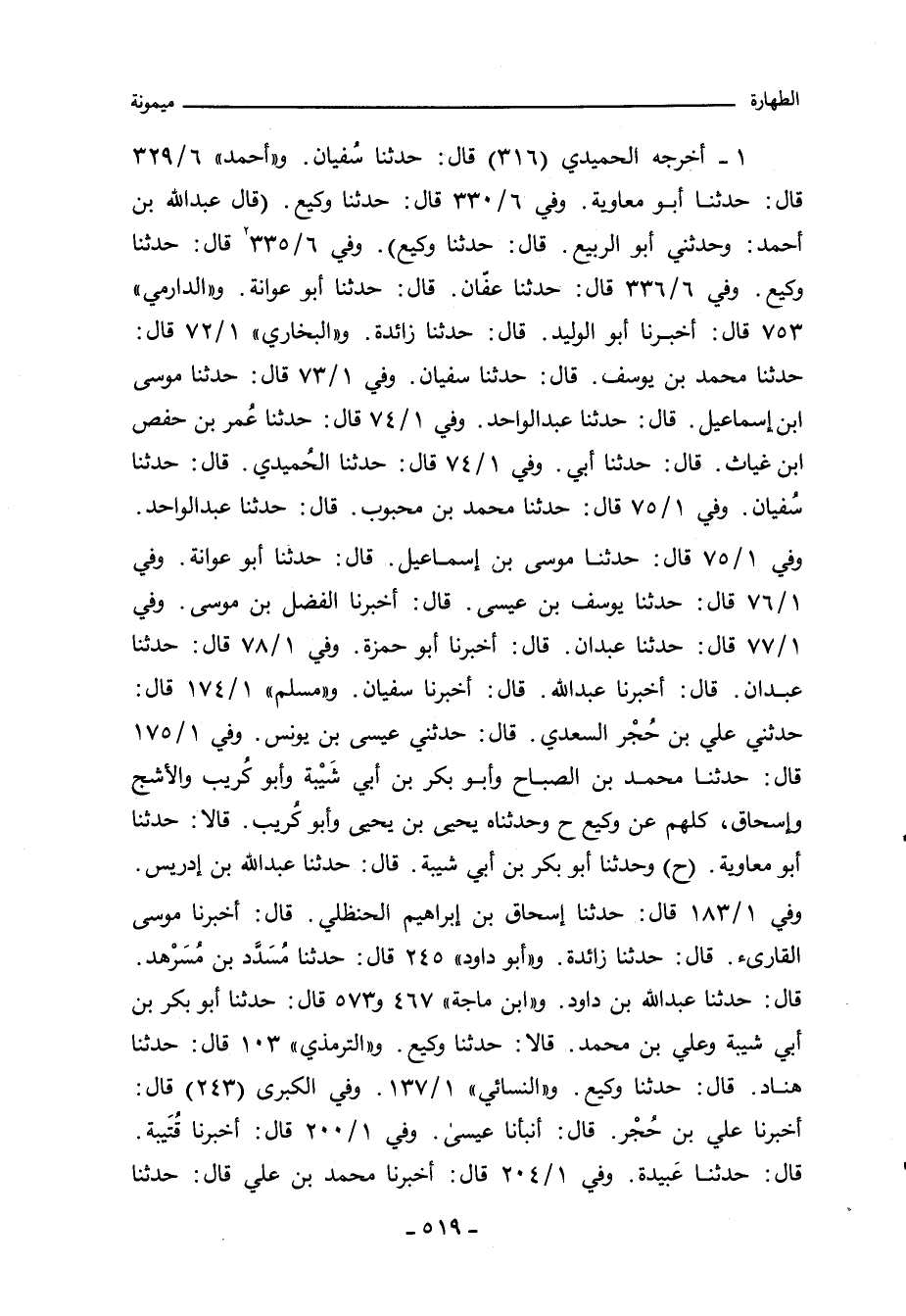 ١ - أخرجه الحميدي (٣١٦) قال: حدثنا سُفيان. و"أحمد" ٦/ ٣٢٩ قال: حدثنا أبو معاوية. وفي ٦/ ٣٣٠ قال: حدثنا وكيع (قال عبد الله بن أحمد: وحدثني أبو الربيع، قال: حدثنا وكيع). وفي ٦/ ٣٣٥ قال: حدثنا وكيع. وفي ٦/ ٣٣٦ قال: حدثنا عفَّان، قال: حدثنا أبو عوانة. و"الدارِمِي" ٧٥٣ قال: أخبرنا أبو الوليد، قال: حدثنا زائدة. و"البُخَارِي" ١/ ٧٢ قال: حدثنا محمد بن يوسف، قال: حدثنا سفيان. وفي ١/ ٧٣ قال: حدثنا موسى بن إسماعيل، قال: حدثنا عبد الواحد. وفي ١/ ٧٤ قال: حدثنا عُمر بن حفص بن غياث، قال: حدثنا أبي. وفي ١/ ٧٤ قال: حدثنا الحُميدي، قال: حدثنا سُفيان. وفي ١/ ٧٥ قال: حدثنا محمد بن محبوب، قال: حدثنا عبد الواحد. وفي ١/ ٧٥ قال: حدثنا موسى بن إسماعيل، قال: حدثنا أبو عوانة. وفي ١/ ٧٦ قال: حدثنا يوسف بن عيسى، قال: أخبرنا الفضل بن موسى. وفي ١/ ٧٧ قال: حدثنا عبدان، قال: أخبرنا أبو حمزة. وفي ١/ ٧٨ قال: حدثنا عبدان، قال: أخبرنا عبد الله، قال: أخبرنا سفيان. و"مسلم" ١/ ١٧٤ قال: حدثني علي بن حُجْر السعدي، قال: حدثني عيسى بن يونس. وفي ١/ ١٧٥ قال: حدثنا محمد بن الصباح وأبو بكر بن أبي شَيْبة وأبو كُريب والاشج وإسحاق، كلهم عن وكيع ح وحدثناه يحيى بن يحيى وأبو كُريب. قالا: حدثنا أبو معاوبة (ح) وحدثنا أبو بكر بن أبي شيبة، قال: حدثنا عبد الله بن ادريس. وفي ١/ ١٨٣ قال: حدثنا إسحاق بن إبراهيم الحنظلي، قال: أخبرنا موسى القارئ، قال: حدثنا زائدة. و"أبو داود" ٢٤٥ قال: حدثنا مُسَدَّد بن مُسَرْهد، قال: حدثنا عبد الله بن داود. و"ابن ماجة" ٤٦٧ و ٥٧٣ قال: حدثنا أبو بكر بن أبي شيبة وعلي بن محمد. قالا: حدثنا وكيع. و"التِّرمِذي" ١٠٣ قال: حدثنا هناد، قال: حدثنا وكيع. و"النَّسائي" ١/ ١٣٧. وفي "الكبرى" (٢٤٣) قال: أخبرنا علي بن حُجْر، قال: أنبأنا عيسى. وفي