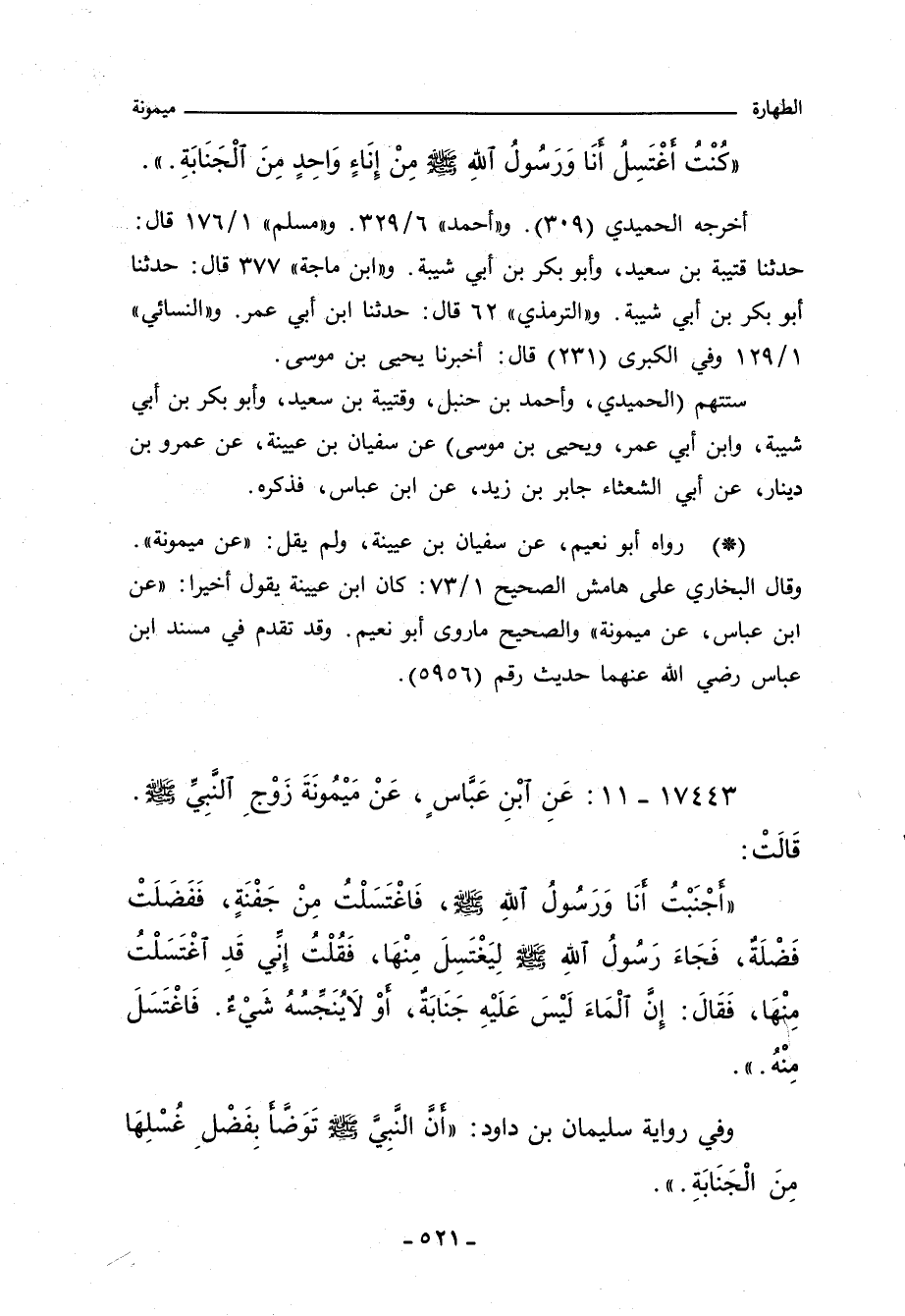 - رواه أبو نعيم، عن سفيان بن عيينة، ولم يقل: عن ميمونة. وقال البخاري على هامش الصحيح ١/ ٧٣: كان ابن عيينة يقول اخيرًا: عن ابن عباس، عن ميمونة والصحيح ماروى أبو نعيم.