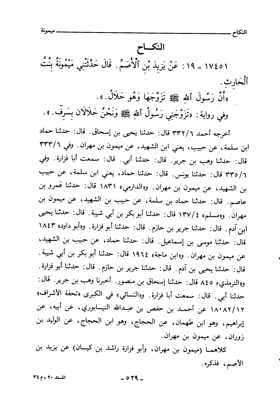 ١٧٤٥١ - عَنْ يَزيِدَ بْنِ الاصَمِّ، قال حَدَّثَتْنِي مَيْمُونَةُ بِنْتُ الْحَارِثِ.