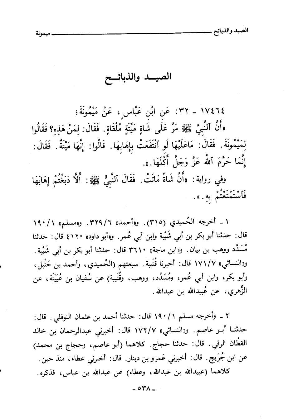١ - أخرجه الحُميدي (٣١٥). و"أحمد" ٦/ ٣٢٩. و"مسلم" ١/ ١٩٠ قال: حدثنا أبو بكر بن أبي شَيْبة وابن أبي عُمر. و"أبو داود" ٤١٢٠ قال: حدثنا مُسَدًد ووهب بن بيان. و"ابن ماجة" ٣٦١٠ قال: حدثنا أبو بكر بن أبي شَيْبة. و"النَّسائي" ٧/ ١٧١ قال: أخبرنا قُتَيبة. سبعتهم (الحُميدي، واحمد بن حَنْبل، وأبو بكر، وابن أبي عُمر، ومُسَدَّد، ووهب، وقُتَيبة) عن سُفيان بن عُيَيْنَة، عن الزُّهري، عن عُبيد الله بن عبد الله.