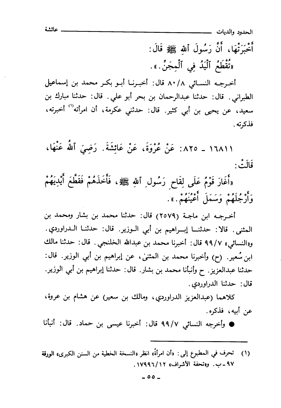 أخرجه ابن ماجة (٢٥٧٩) قال: حدثنا محمد بن بشار ومحمد بن المثنى. قالا: حدثنا إبراهيم بن أبي الوزير. قال: حدثنا الدراوردي. و"النَّسائي" ٧/ ٩٩ قال: أخبرنا محمد بن عبد اللهِ الخلنجي. قال: حدثنا مالك بن سُعير (ح) واخبرنا محمد بن المثنى، عن إبراهيم بن أبي الوزير. قال: حدثنا عبد العزيز. ح وانبانا محمد بن بشار. قال: حدثنا إبراهيم بن أبي الوزير. قال: حدثنا الدراوردي.