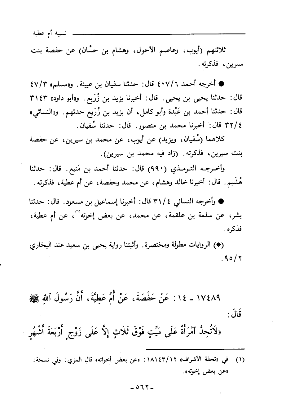- وأخرجه الترمذي (٩٩٠) قال: حدثنا أحمد بن مَنيع، قال: حدثنا هُشَيم، قال: أخبرنا خالد وهشام، عن محمد وحفصة، عن أم عطية، فذكرته.