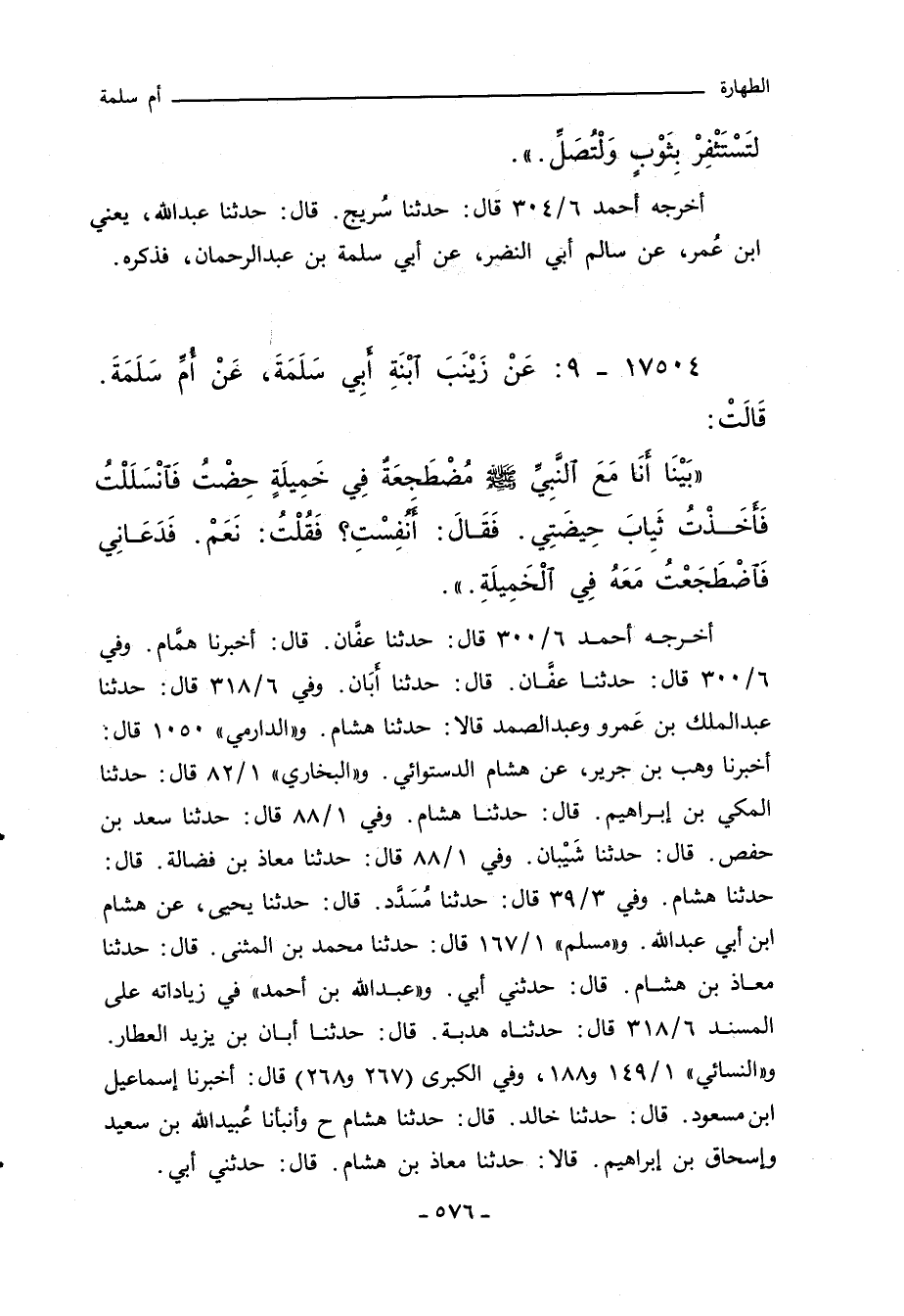 ١٧٥٠٤ - عَنْ زَيْنَبَ ابْنَةِ أبي سَلَمَةَ، عَنْ أم سَلَمَةَ. قَالَتْ: