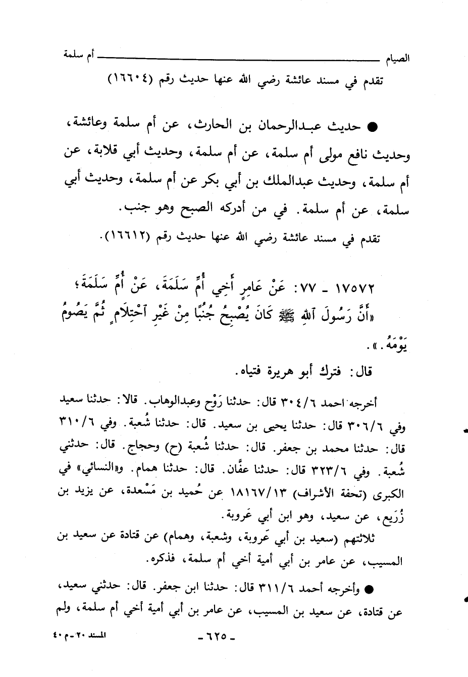 - حديث عبد الرحمن بن الحارث، عن أم سلمة وعائشة، وحديث نافع مولى أم سلمة، عن أم سلمة، وحديث أبي قلابة، عن أم سلمة، وحديث عبد الملك بن أبي بكر عن أم سلمة، وحديث أبي سلمة، عن أم سلمة. في من ادركه الصبح وهو جنب.